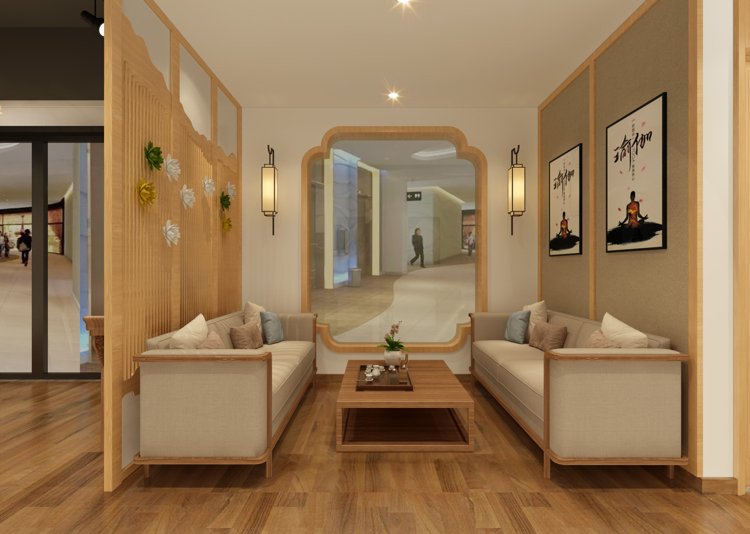 2. 在美容院屏風和隔斷之間設計活動裝飾畫框,通過更換圖片,讓顧客感覺到美容院的新穎,屏風和隔斷的設計要考慮可移動性,如果再配備燈光,個性的化妝品點綴等,這樣會給顧客一種美的享受。